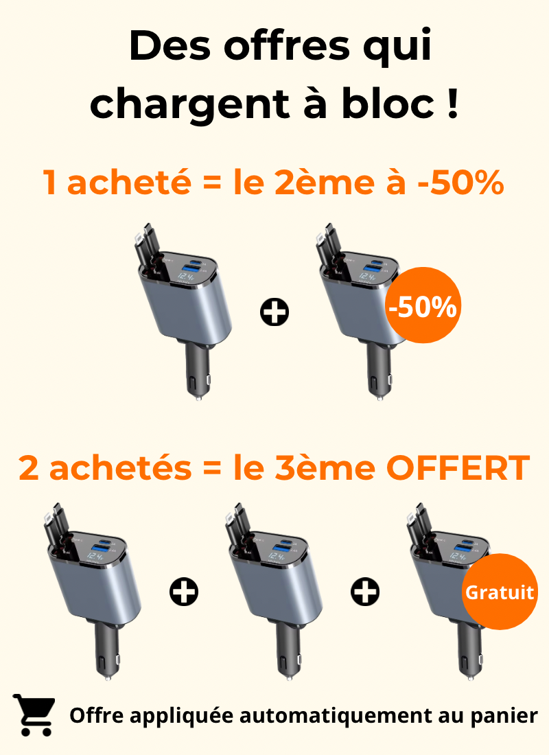 Plus de disputes pour le chargeur en voiture ! Avec ses ports USB-A, USB-C et ses câbles rétractables intégrés, Dryyver Volt permet de recharger simultanément smartphones, tablettes et consoles. Idéal pour les voyages en famille, chacun reste connecté sans interruption !