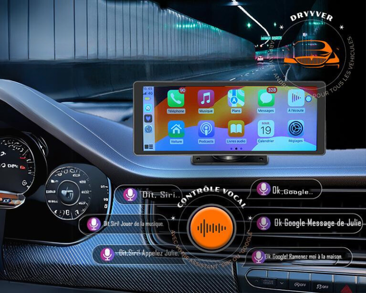 Votre Assistant Vocal au VolantGrâce à la fonction de contrôle vocal, vous pouvez utiliser toutes les fonctionnalités de votre écran sans quitter la route des yeux. Passez vos appels, envoyez des messages, lancez votre musique ou demandez un itinéraire en toute sécurité, simplement en utilisant votre voix.
